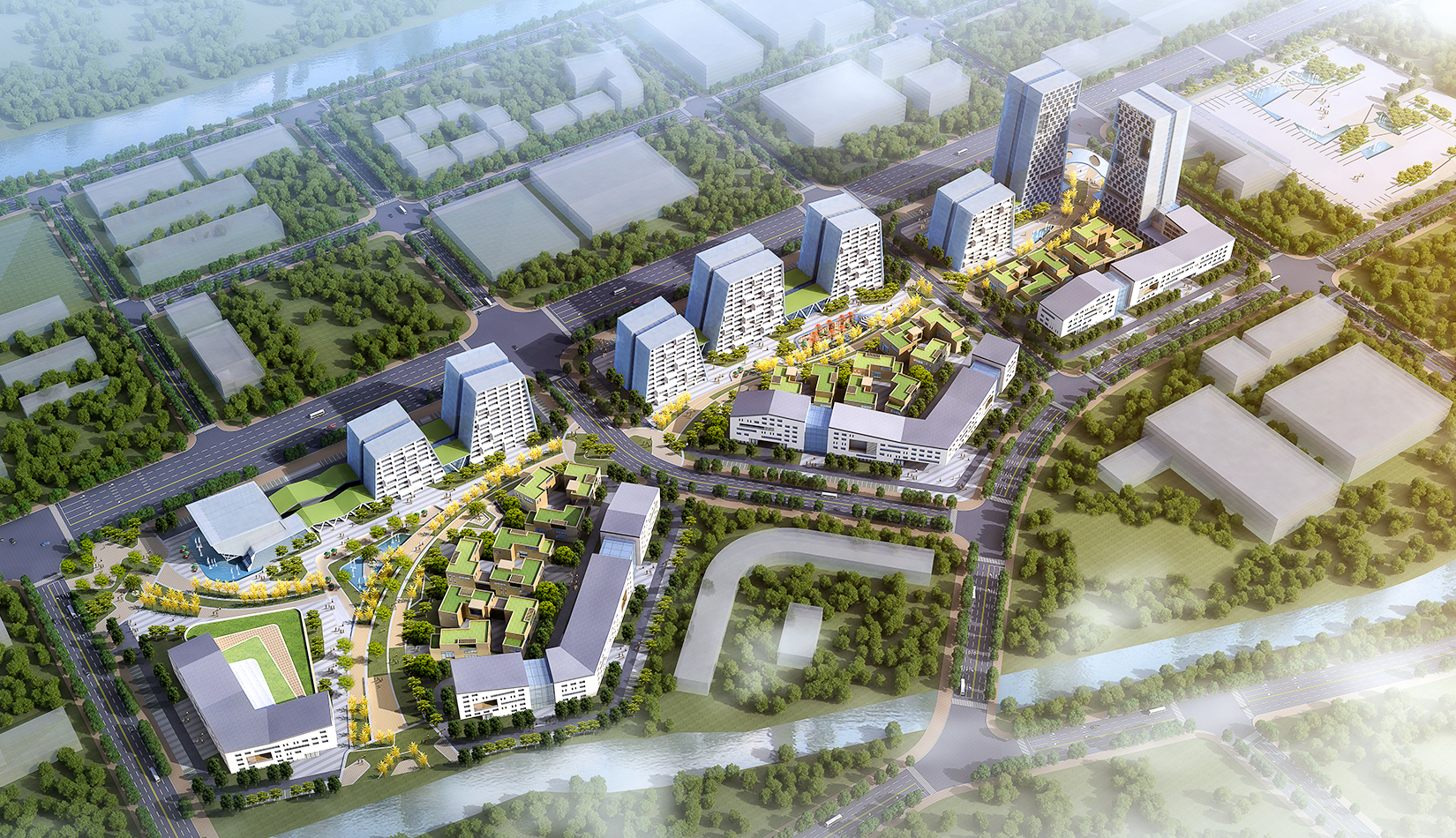 為了打造一個完美的城市沿街形象,以及營造一個安靜舒適的工作與休閑空間,我們采用了半圍合的規(guī)劃布局,北側高層建筑基本成“一”字布局,高低錯落,塑造完美的城市天際線,宛如一條盤旋上升的巨龍;在南側一個個長方形建筑成折線型連續(xù)排列,隔離周邊嘈雜的城市環(huán)境,猶如越出水面的“金鱗”,中央景觀帶東西側以友好的姿態(tài)向城市開放,美化城市形象。\