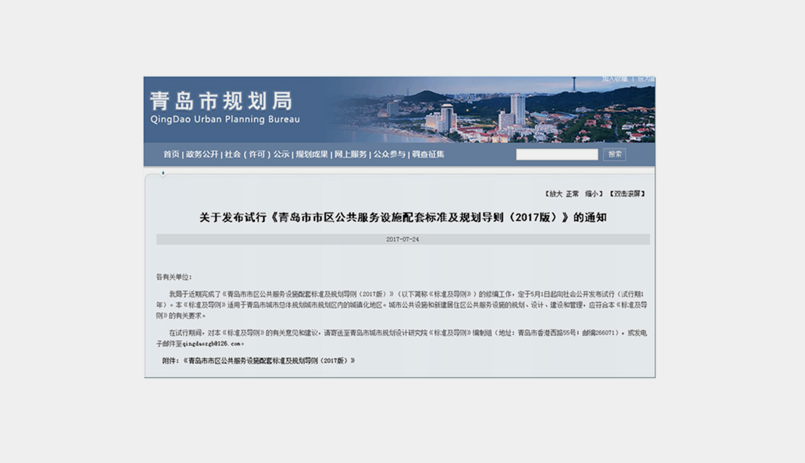 項目名稱:《青島市市區(qū)公共服務(wù)設(shè)施配套標準及規(guī)劃導則》修編