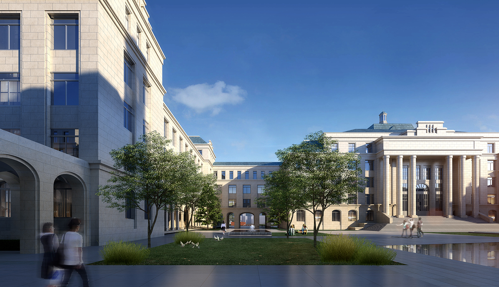 景觀設(shè)計(jì)引用了《禮記聘義》中對玉的六大特征:“禮”“知” “樂” “信”“義”“仁”作為景觀主題植入學(xué)校各個(gè)重要空間。