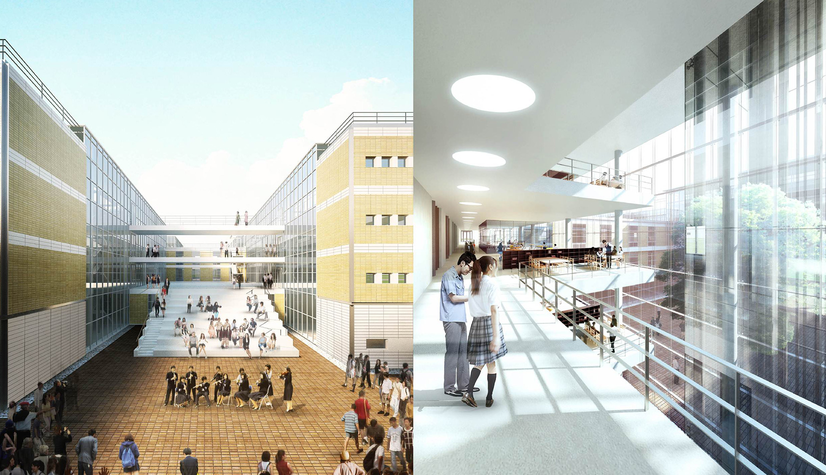通過對功能、流線的科學(xué)整合與單體建筑的精心設(shè)計(jì),運(yùn)用現(xiàn)代的建筑語言營造富有強(qiáng)烈時(shí)代感的校園環(huán)境,并不斷探索開放、和諧、人文的校園設(shè)計(jì)策略,使建筑體現(xiàn)時(shí)代特征。